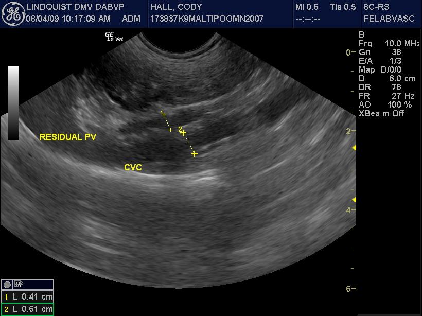 A 2-year-old MN Malti-poo was presented for recheck examination after being evaluated at an emergency facility for anorexia, diarrhea, and a pruritic face. Abnormalities on blood work at the emergency facility were elevated ALT activity and bilirubinuria. Physical examination was unremarkable. CBC and blood chemistry showed leukocytosis, neutrophilia, monocytosis, elevated BUN, high BUN/Creatinine ratio, and mild hypocalcemia. Urinalysis was normal. Urine culture yielded no growth.