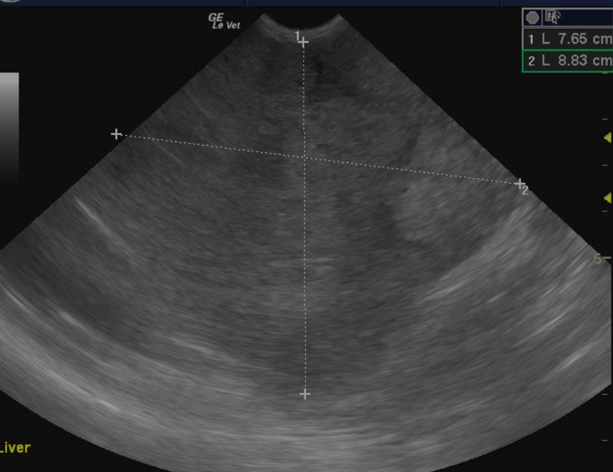 The patient is a canine Beagle, NM, 10 years old. Depressed, bloody diarrhea, PU/PD, severely elevated SAP, moderately elevated ALT, severely elevated GGT, Spec cPL mildly elevated, severe anemia, severely increased platelets.
