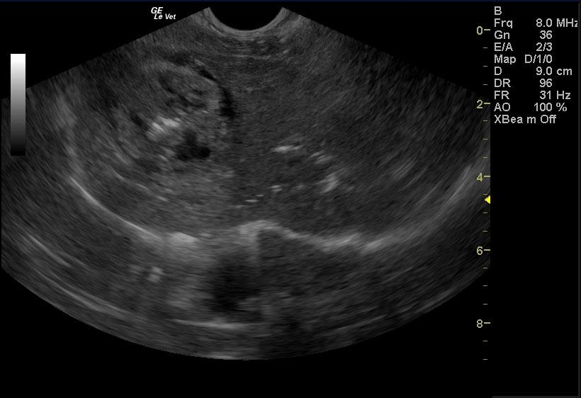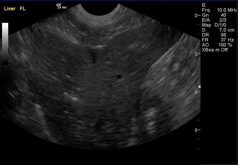 A 15 year old female spayed mixed canine with a history of decreased appetite, diarrhea, and ataxia was presented for evaluation of being unable to walk, weak and lethargic, anorexic, and possible seizures. Abnormalities on serum biochemistry were severely elevated liver enzyme activity, bilirubinemia, hypokalemia, and elevated pre-prandial bile acids. Systolic blood pressure was normal.