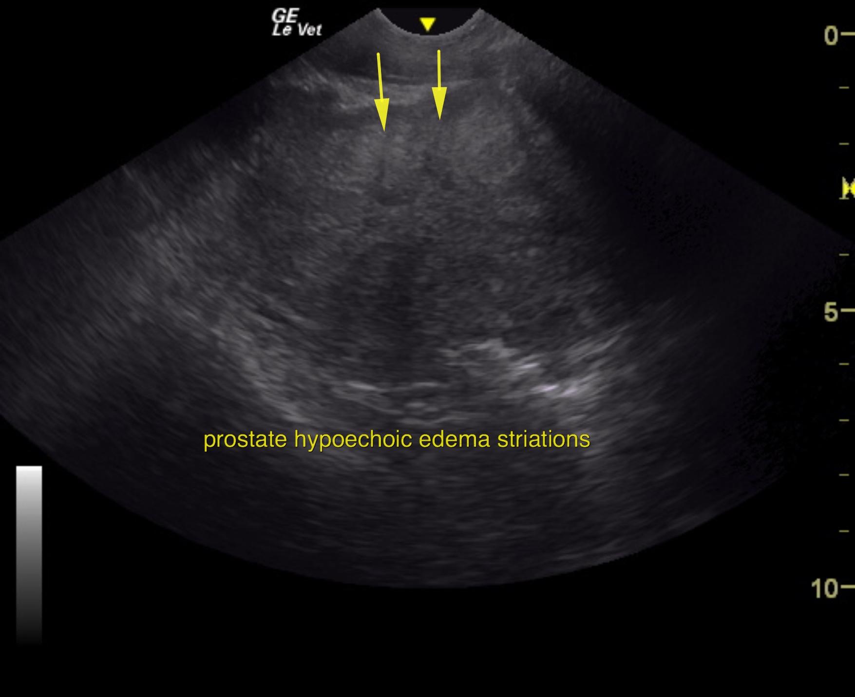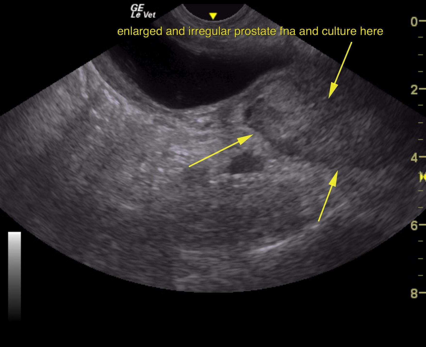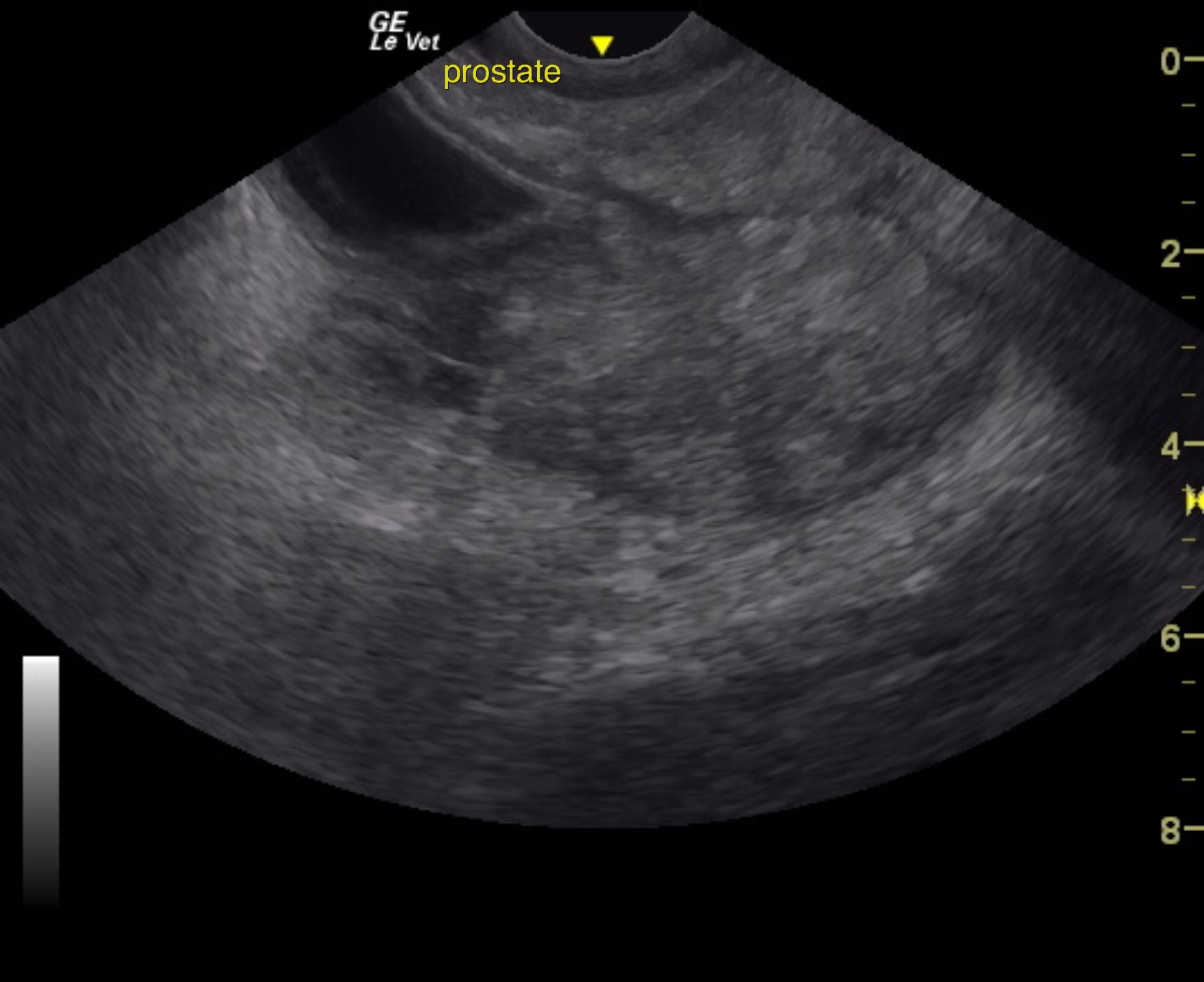 An 11-year-old NM Labrador with a history of gradual weight loss was presented for evaluation of abdominal pain and diarrhea. On abdominal palpation, the intestines were gas-filled, which was confirmed on survey radiographs. Elevated ALT activity, BUN, and glucose were present on serum biochemistry.