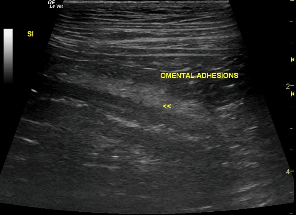 A 5-year-old FS Bulldog was presented for vomiting. Evaluation of this dog included recent blood work which showed hemoconcentration, hyperamylasemia, and hyperlipasemia. Survey abdominal radiographs showed no obvious foreign body and no obstructive pattern.