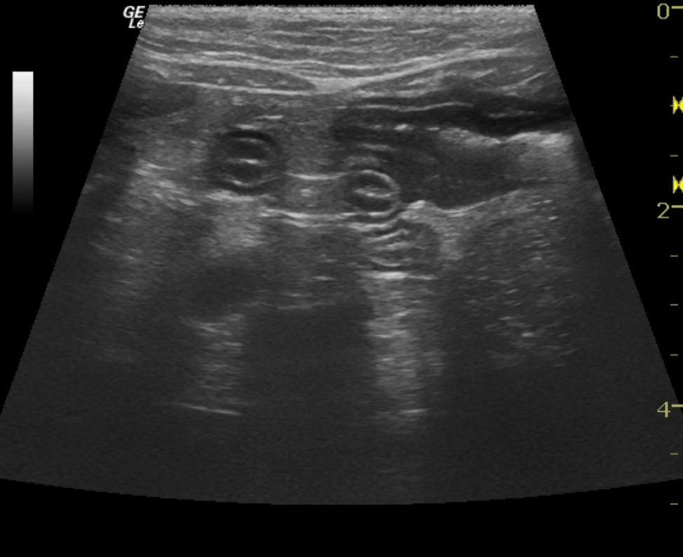 A 16-year-old MN DSH cat was presented for weight loss, decreased appetite, decreased drinking, and constipation. Physical exam was unremarkable other than poor body condition and palpably thickened intestines. CBC revealed neutrophilia. Blood chemistry showed hyperamylasemia and the T4 was within normal limits. Urinalysis showed a cloudy, amber appearance, hematuria, and a large number of RBCs. Urine microalbumin was within normal limits and the urine culture did not yield any growth.
