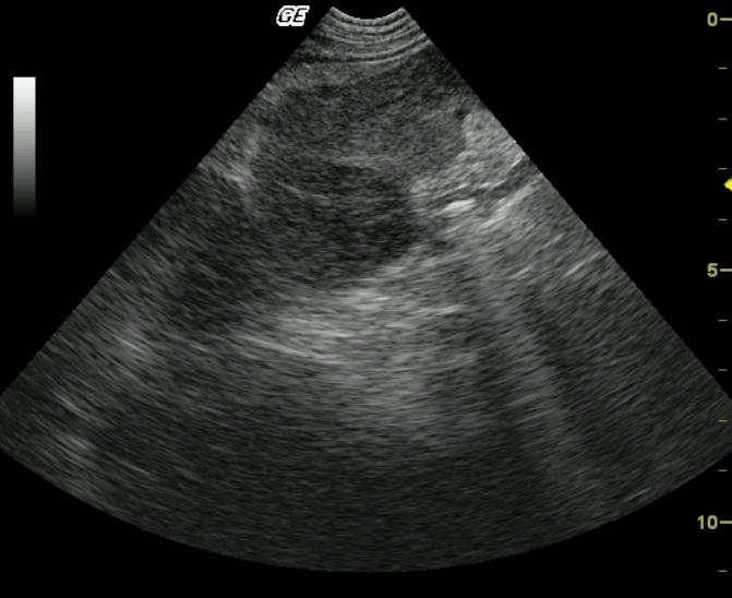 A 10-year-old MN Pug dog was presented for the evaluation of anorexia, vomiting, diarrhea, and pollakuria. No abnormalities were noted on the physical exam. The CBC showed a neutrophilia, monocytosis, and thrombocytopenia. A serum biochemical profile revealed elevated serum alkaline phosphatase, ALT, AST, GGT enzyme activities as well as hypercholesterolemia.