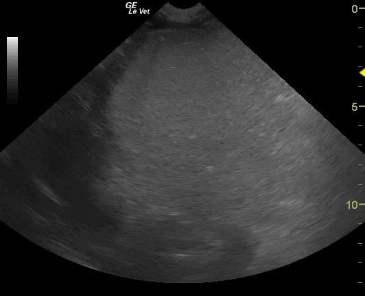 A 7-year-old M German Shepherd dog was presented for acute anorexia and swollen abdomen.