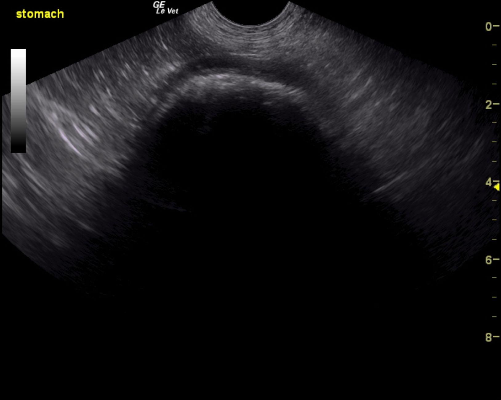 The patient is a canine Rottweiler, NM, 10 years, 105.8 lbs. who was presented for weight loss, occasional v/d, history of eating rugs/carpets and dog beds on multiple occasions, however this is a new behavior change. No vomiting currently. Urine specific gravity 1.025, pH 6.5.