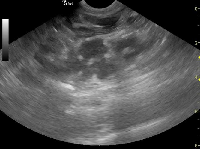 A 12-year-old MN DSH cat was presented for acting hungry but not eating, polyuria, and progressive weight loss. The only significant abnormality on physical examination was a thickened intestine.