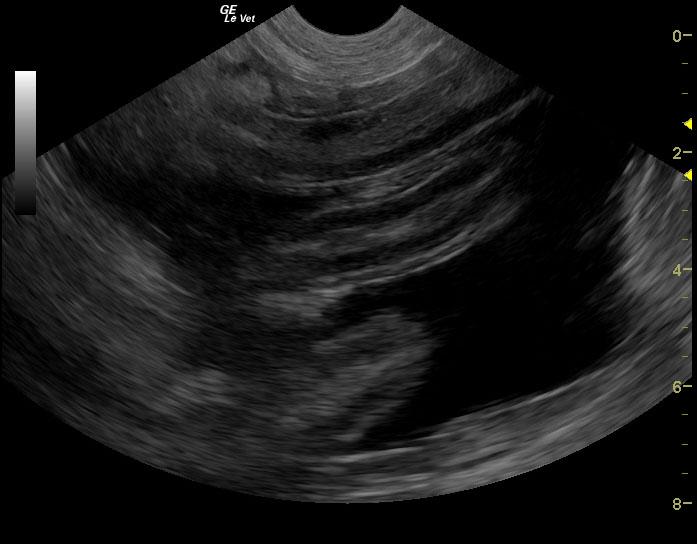 A 6-year-old female spayed Hound mix dog was presented for decreased appetite, increased drinking, and watery diarrhea for 4 days. Physical exam found soft, fluid filled bowels on abdominal palpation. An anti-diarrheal injection was administered, and the patient was discharged with oral anti-diarrheal medication, along with Tylan powder. Approximately 1 week later, the patient presented for persistent decreased appetite, lethargy, and watery stool.