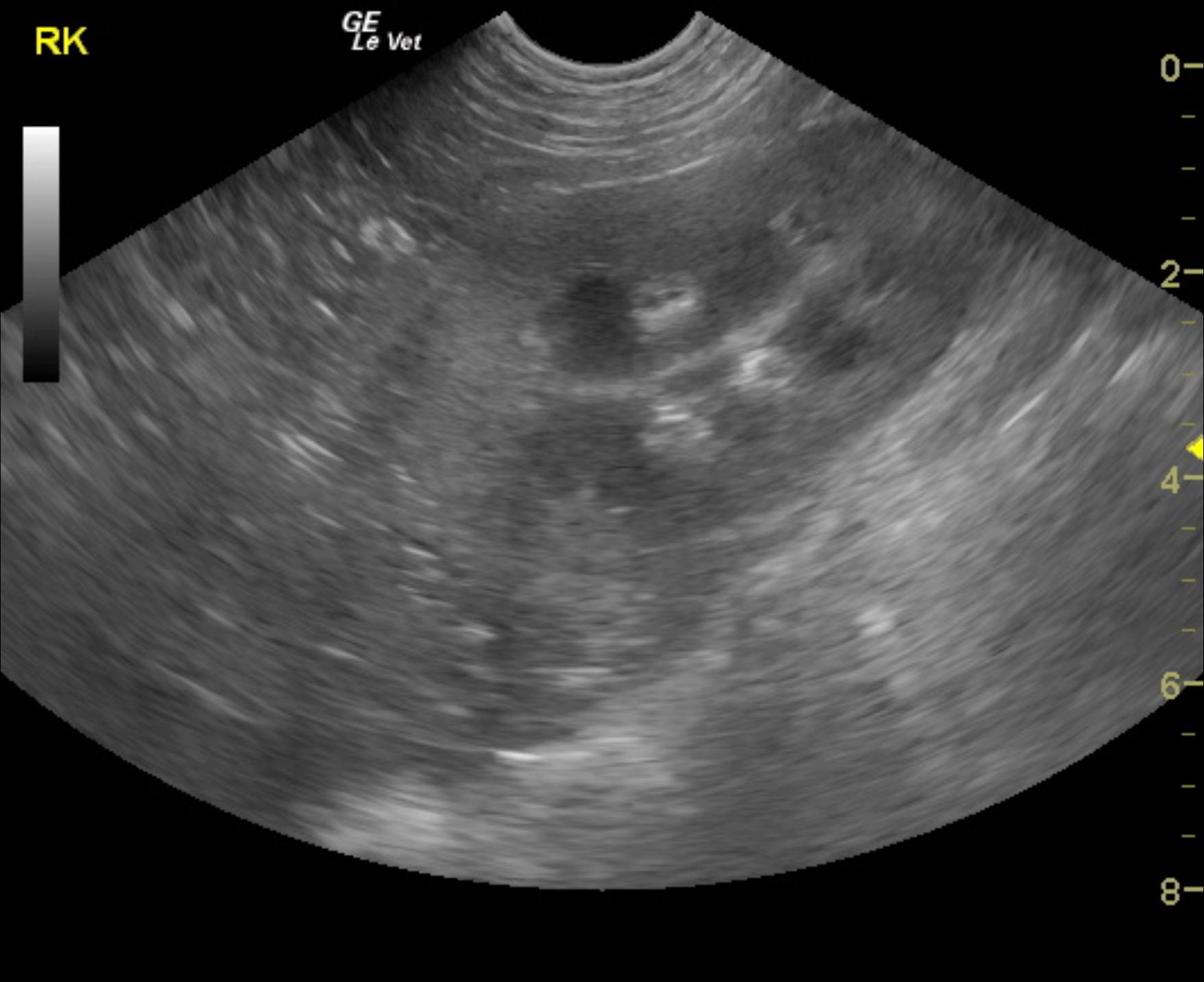 The patient is a canine English Bulldog, MN, 9 years, 67.5 lbs who was presented for vomiting and diarrhea. The patient is in renal failure. Urine specific gravity 1.017, 2+ protein, white count 11-20. Culture revealed E Coli. BUN 45, creatinine 3.6. Multiple, mild positives for Leptospirosis ( Leptospirosis titers positive. Pomona 1-200, Grippotyphosa 1-400. Autumnalis 1-200,